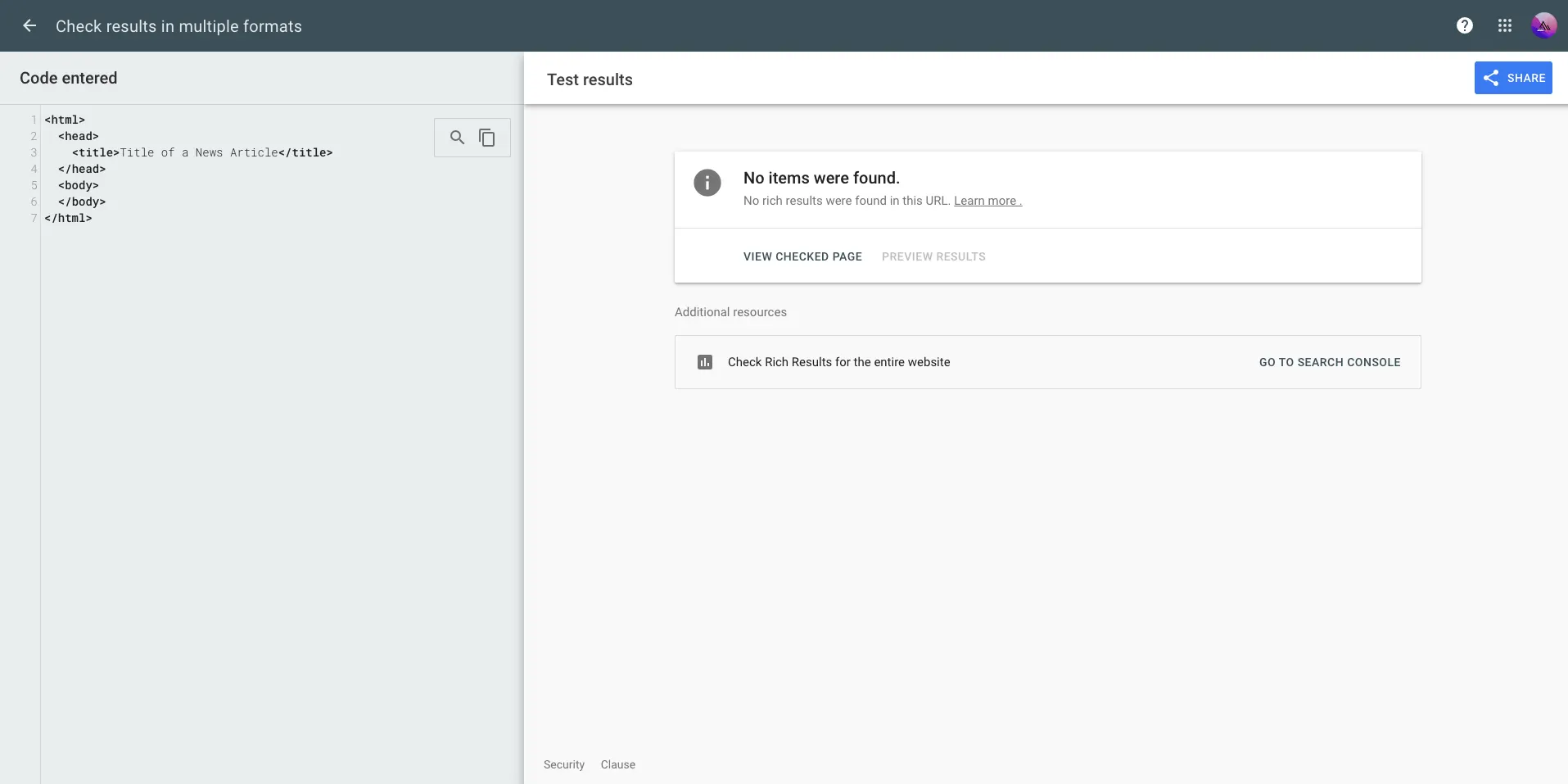 Without JSON-LD, Google Search Console has no structured data to validate — and your site won't appear in any of the Enhancements reports. Here's what it looks like when structured data is missing or incomplete: